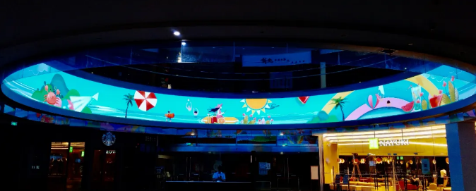 武漢某大型商場大廳有一塊分辨率為13760*440的環(huán)形led屏,根據(jù)客戶要求,采用了迷你LVP609 4K設(shè)備帶載,對led屏完成GenLock 同步級聯(lián)拼接,畫面流程無錯位,實現(xiàn)了超長的環(huán)形led屏的點對點顯示,讓整個商場頂級視效得到完美的呈現(xiàn)。